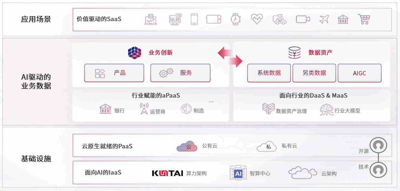 数字时代,,,,围绕企业数字化转型的关键要素,,新币娱乐数码开创性的提出数云融合战略和技术体系框架,,着力在云原生、、、、数字原生、、、AI原生和信创产业上架构产品和服务能力,,为处在不同数字化转型阶段的快消零售、、、汽车、、金融、、医疗、、、、政企、、、、教育、、运营商等行业客户提供泛在的敏捷IT能力和融合的数据驱动能力,,构建跨界融合创新的数字业务场景和新业务模式,,,助力企业级客户建立面向未来的核心能力和竞争优势,,,,全面推动社会的数字化、、、智能化转型升级。。