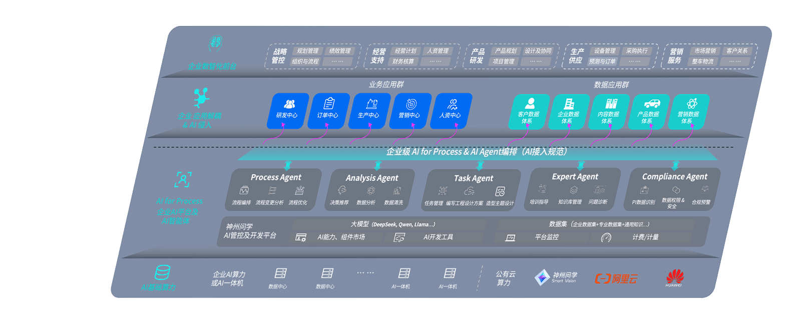新币娱乐问学智车解决方案是一套基于AI技术的汽车行业智能化系统,,,,覆盖从底层算力到顶层AI应用的全栈方案。。。。方案由算力层、、模型层和应用层组成:算力层,,,,方案支持多种一体机配置,,具备云端灵活部署、、、、多云适配以及动态优化计算资源的能力;模型层,,新币娱乐问学平台版提供了企业级AI应用一站式构建与管理平台,,,,支持基于后训练强化技术的汽车企业专属模型的训练、、、、评测和运营;应用层,,,新币娱乐问学DeepSeek版提供包括超级员工、、、、智能招采、、、智能营销、、智能客服、、AI for BI等一系列解决方案,,可助力汽车行业实现数字化转型,,让管理更智能、、、、响应更敏捷。。。
